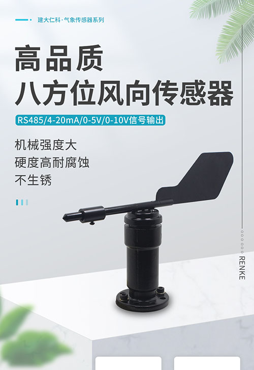 RS-FX-081型風向變送器,高品質八方位傳感器,可選擇485(Modbus-RTU協議)/4-20mA/0-5V/0-10V信號輸出,量程范圍廣,高精度,防水防腐。